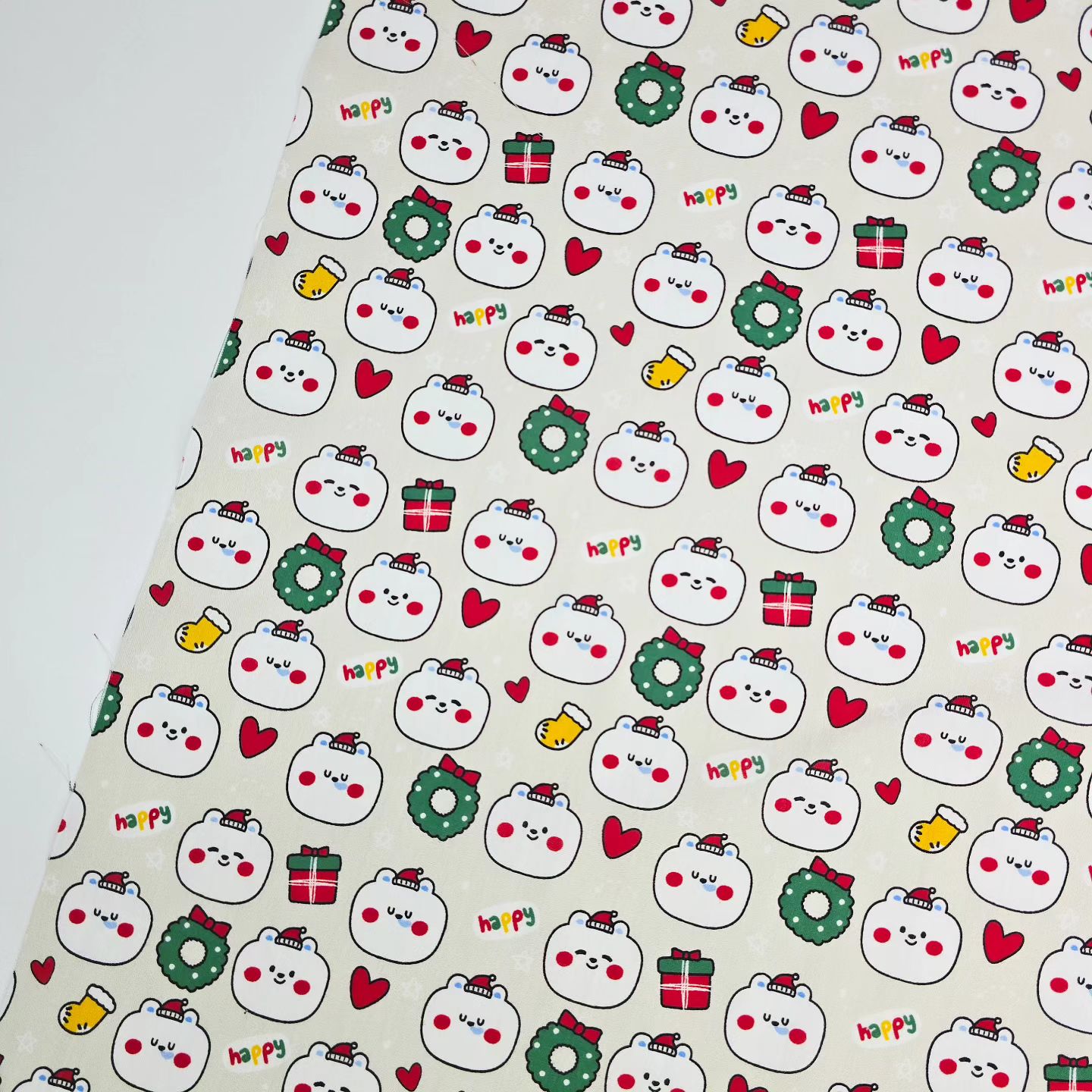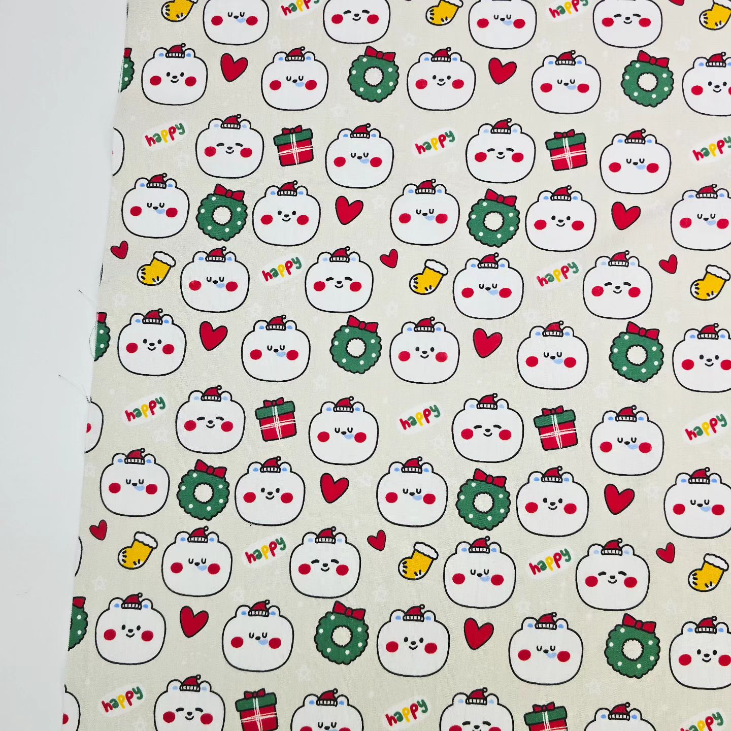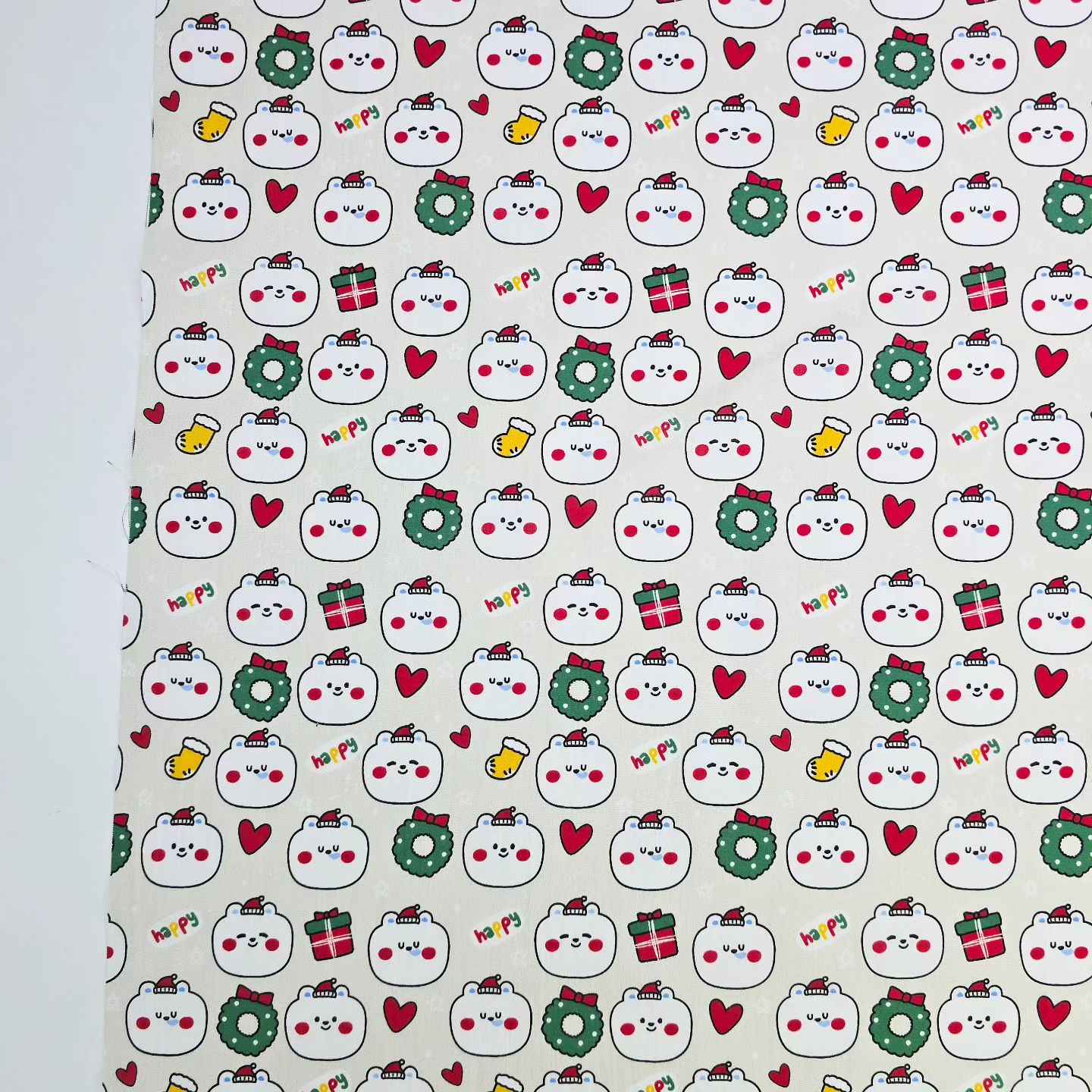 小熊兔草莓圖案布料,可愛,兒童,縫紉,被子 - 韓國布料