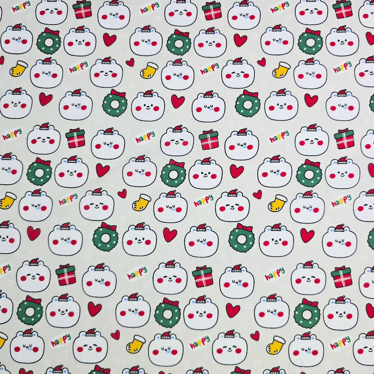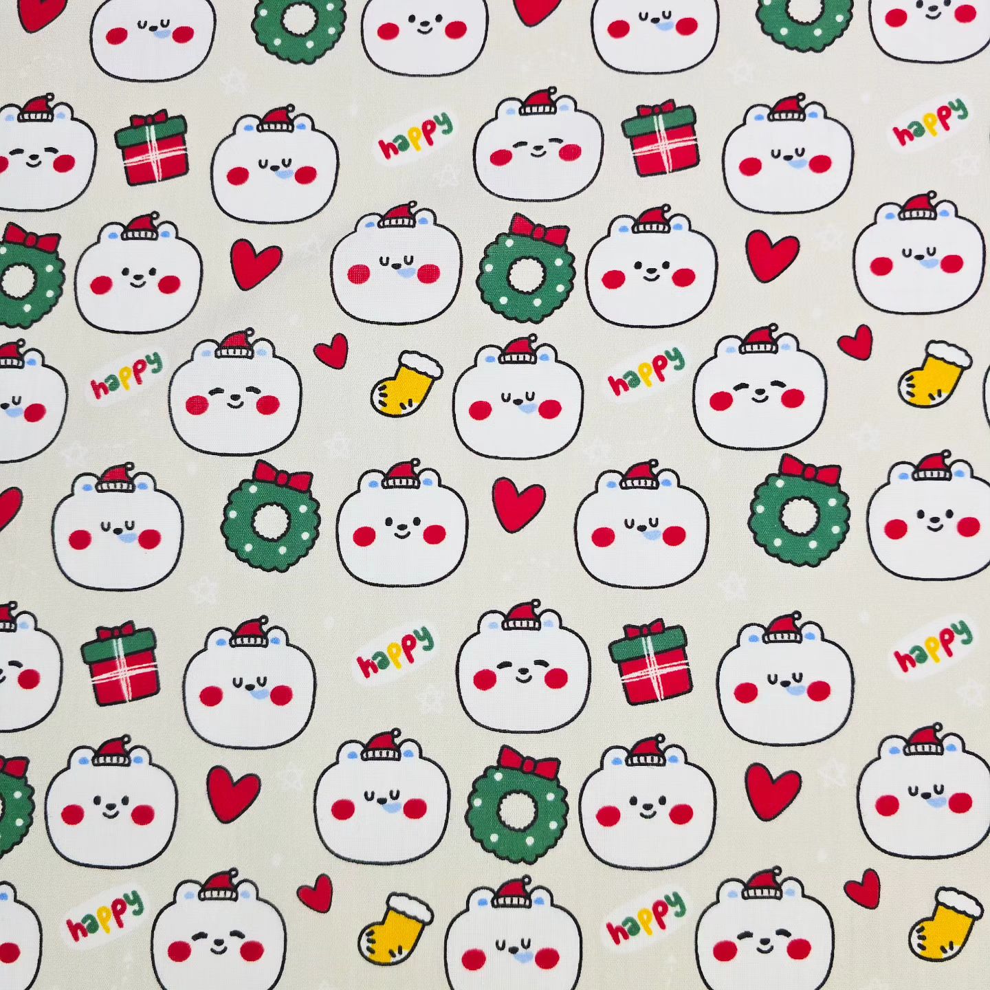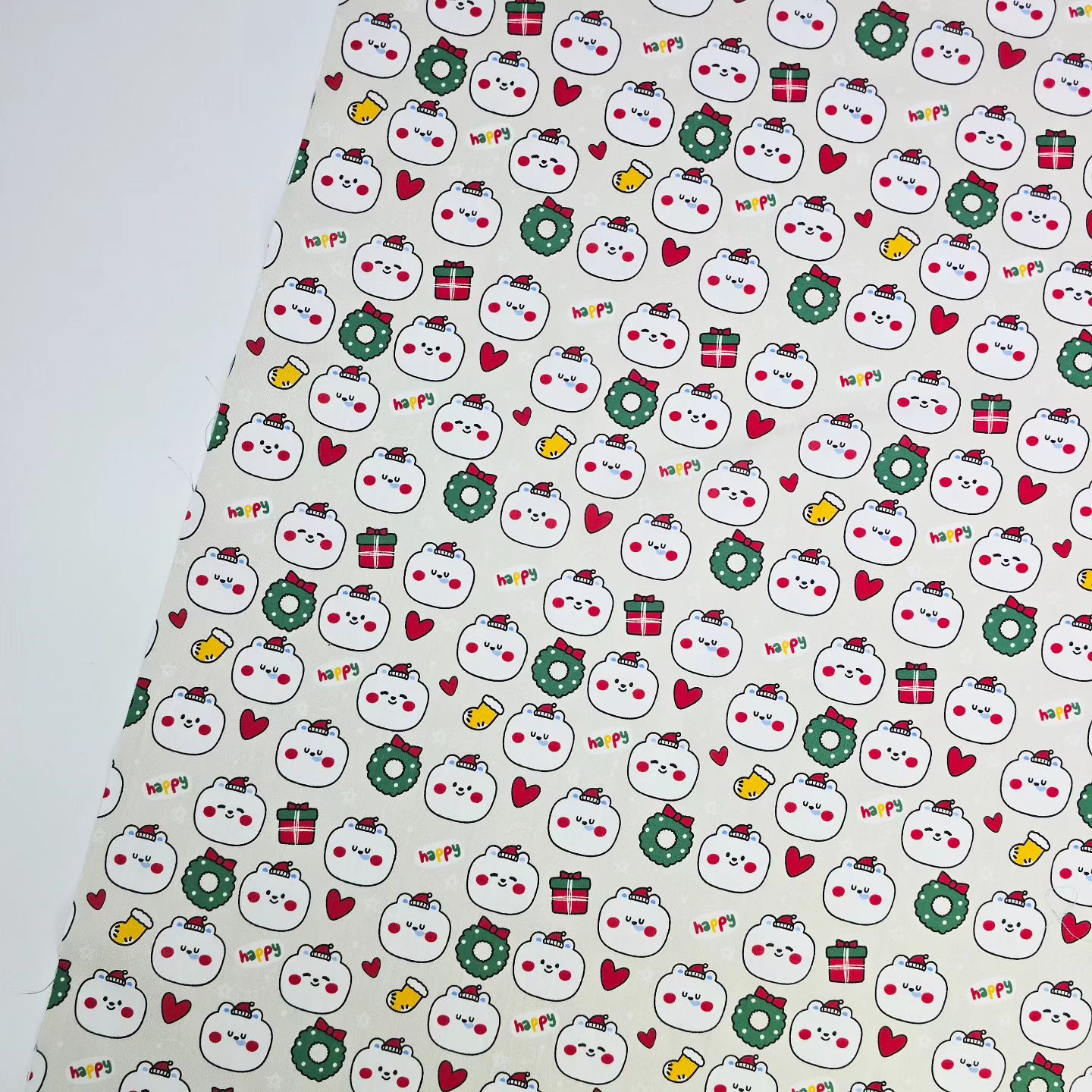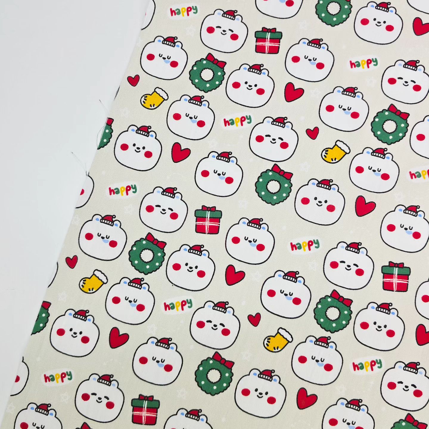 小熊兔草莓圖案布料,可愛,兒童,縫紉,被子 - 韓國布料