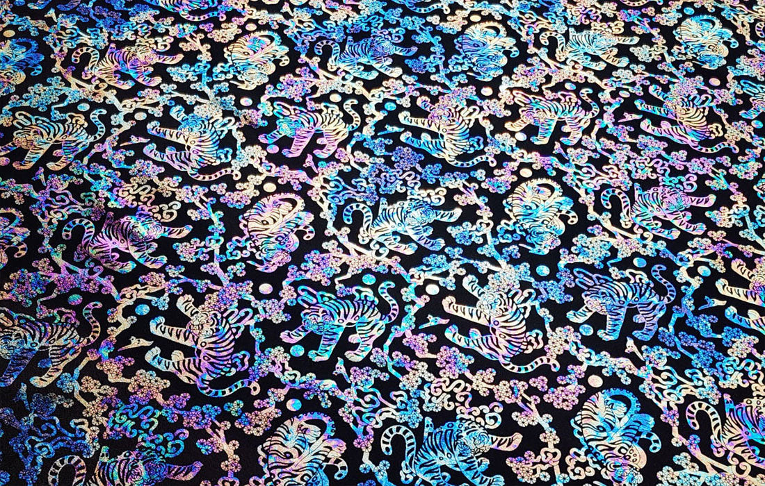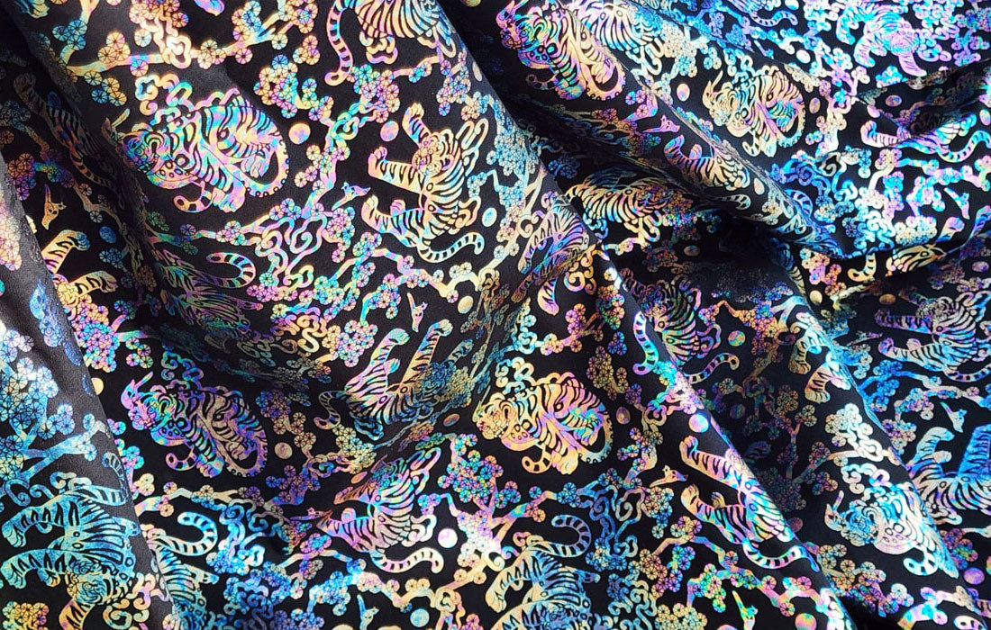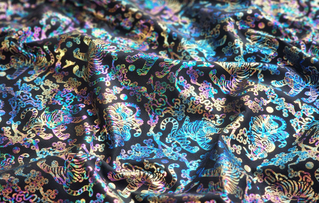 此佈料採用 DTP(數位紡織印花)方式印花