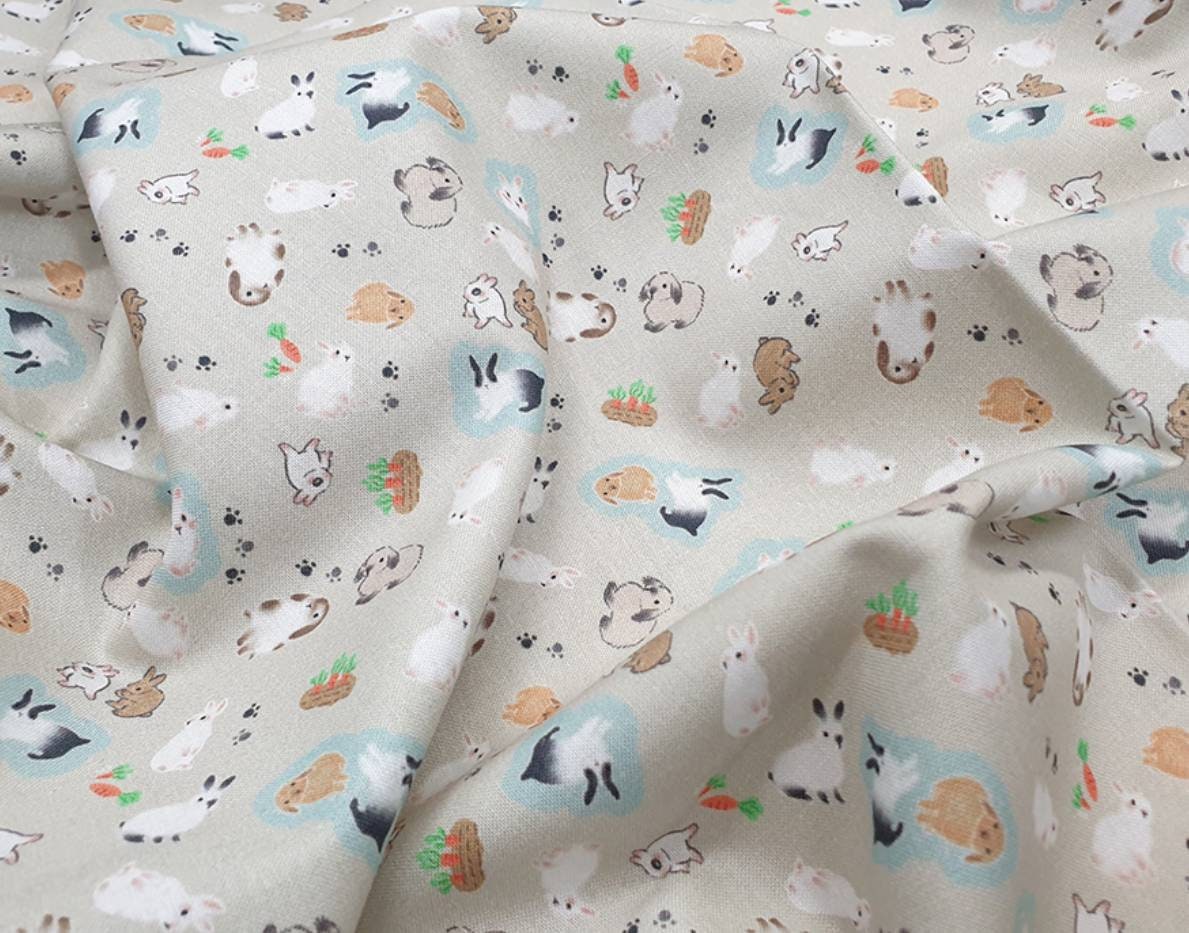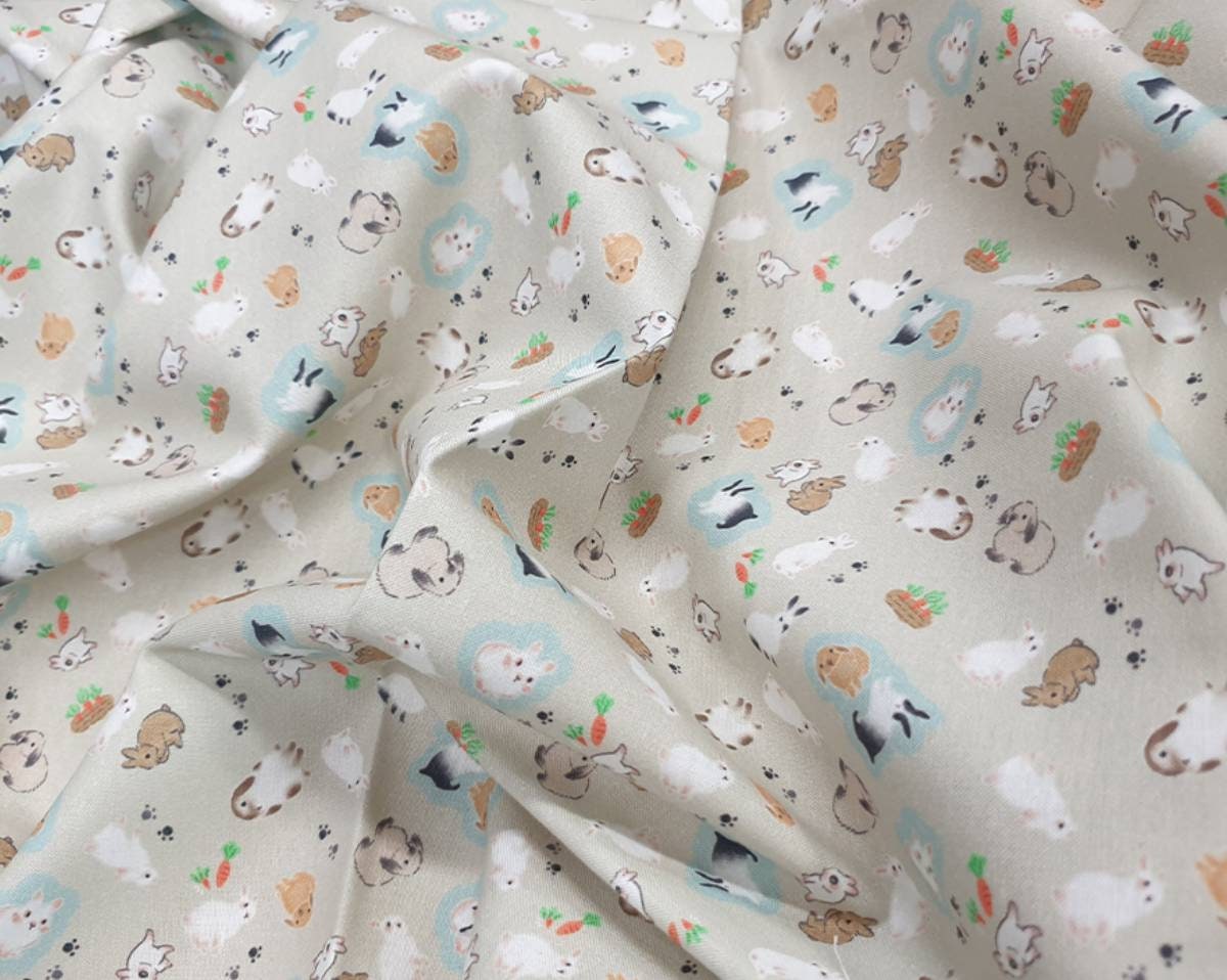 兔子圖案布料,可愛,兒童,縫紉,被子 - 韓國布料