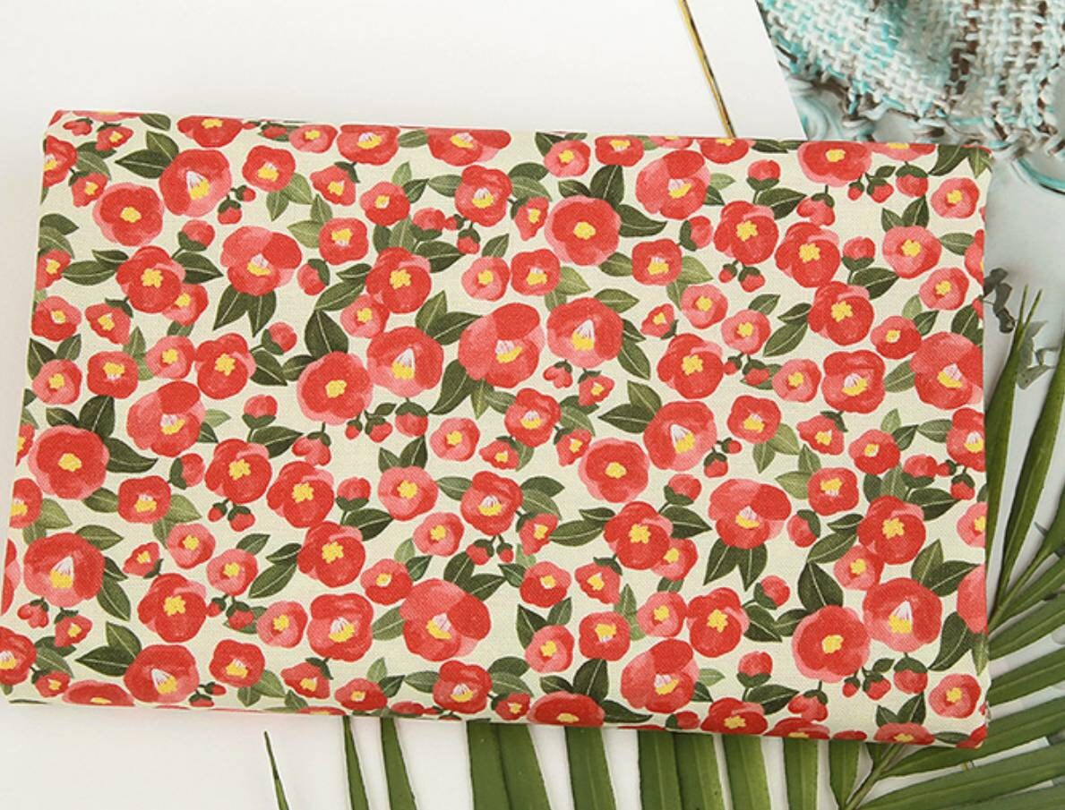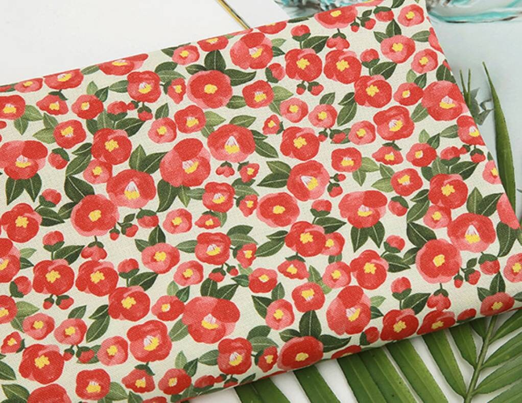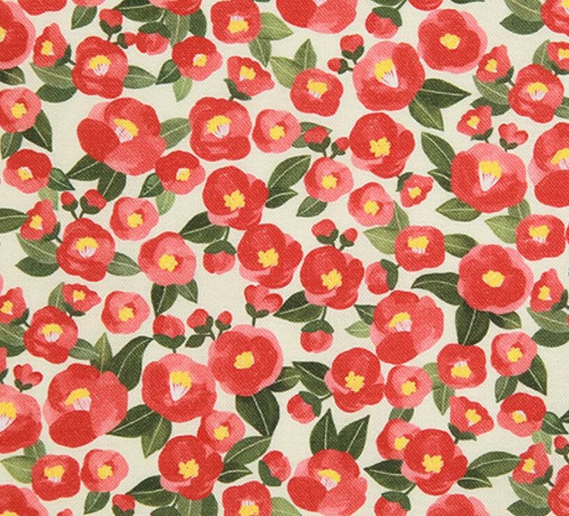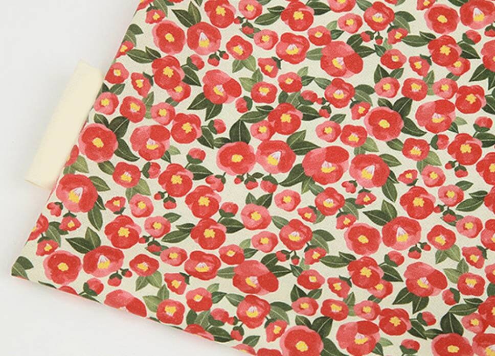 水彩山茶花圖案布料 - 韓國布料