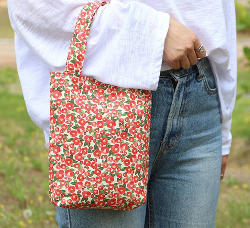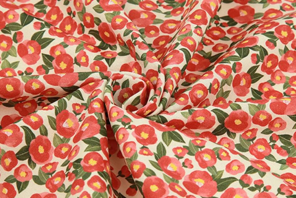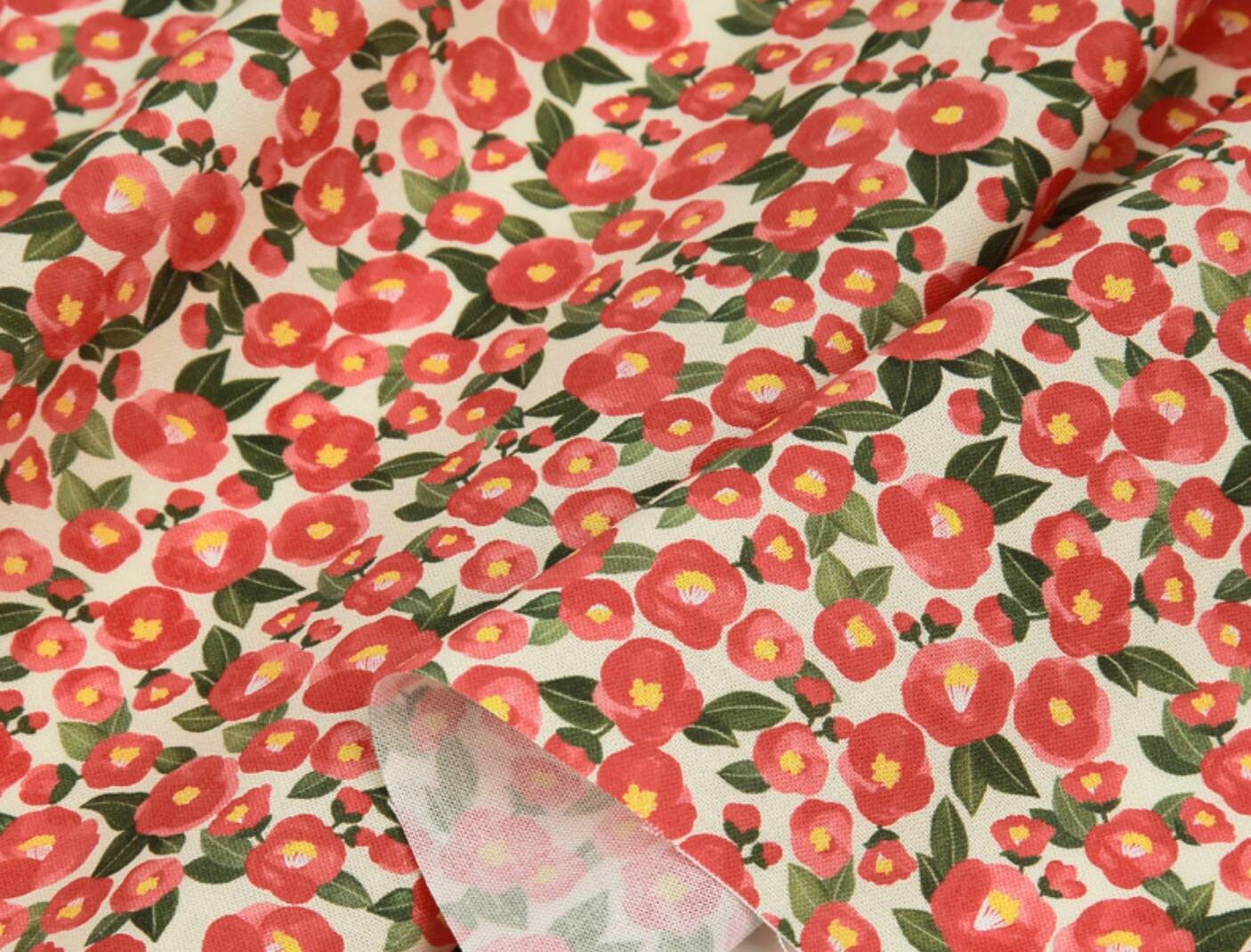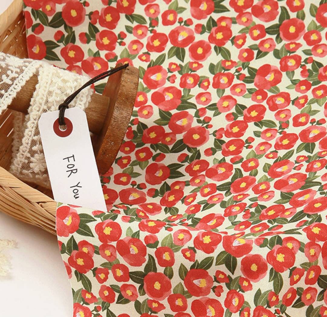 水彩山茶花圖案布料 - 韓國布料