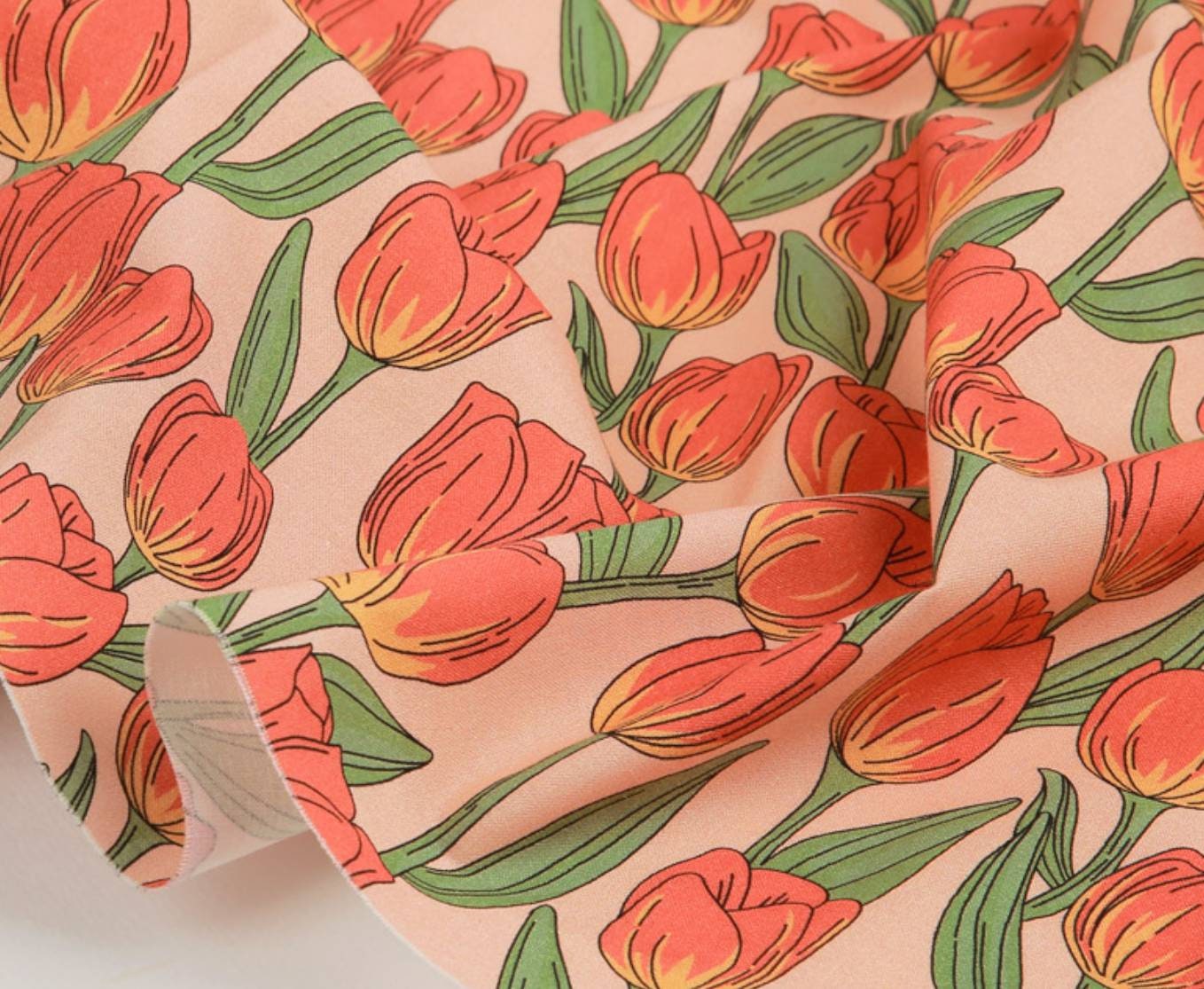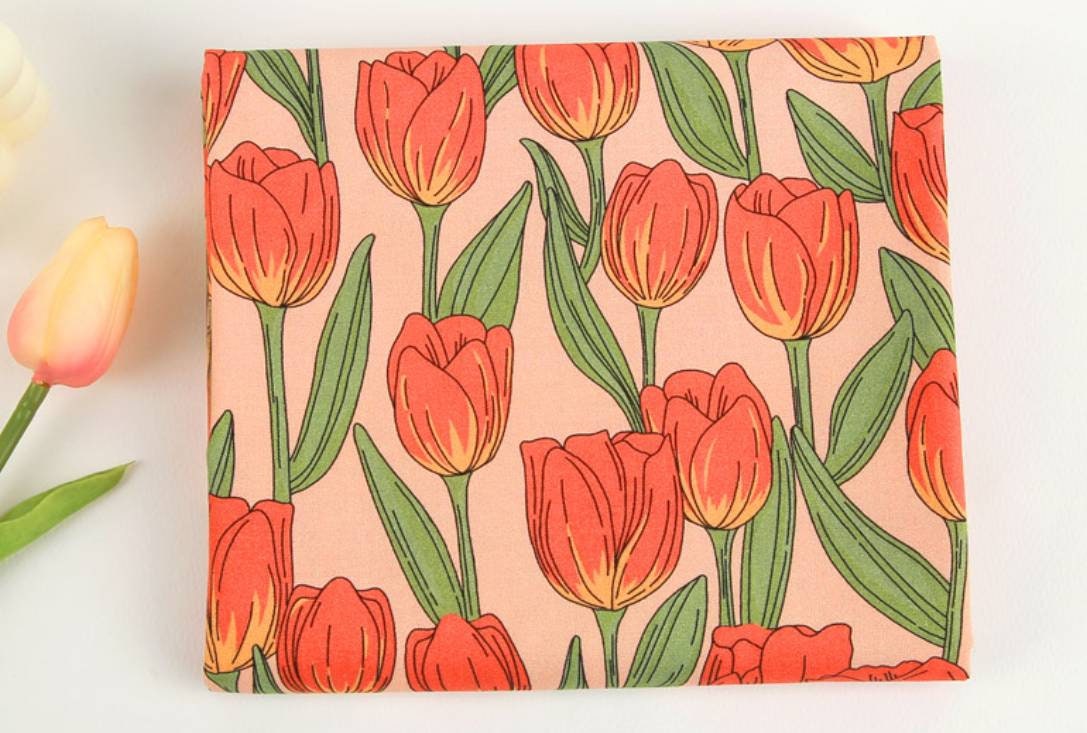 鬱金香花朵圖案布料,可愛,縫紉,被子 - 韓國布料
